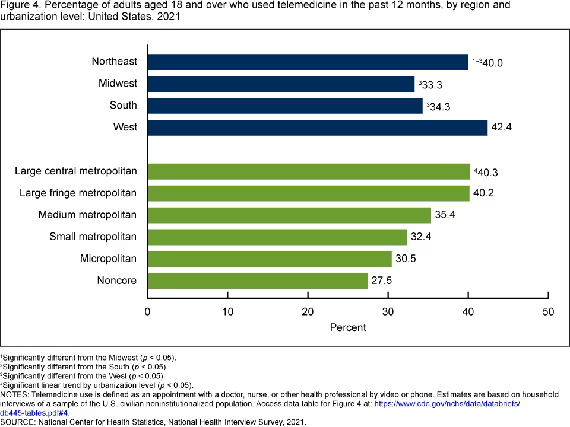 Since 2021, the adoption of telemedicine has steadily increased to nearly 40% within the United States. If we dig into who is taking full advantage of the solutions, however, we can see that in rural communities, where access to doctors and comprehensive hospital care often lags behind that of metropolitan counterparts, the adoption rate is only 27.5%.